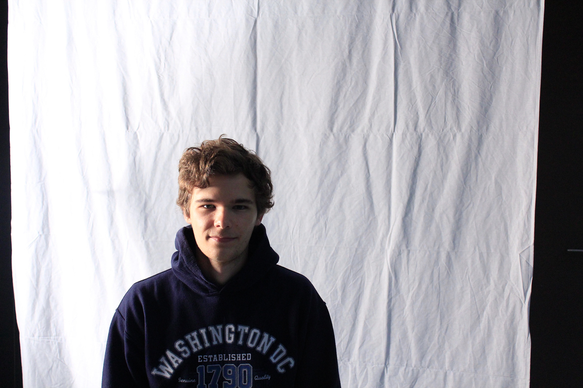 Use of adobe bridge and a high stand for the spot light (this is called a butterfly lighting effect). However because the subject isn't facing directly towards the camera you can't see how the effect truly works. This lighting technique is very flattering because it lights up most of the face with a littlle triangle shadow under the nose. It also cases a little shadow under the chin. It is usually used for beauty shots. Also you'll notice there is little to no shadow cast onto the back sheet. I've used adobe bridge camera raw to create a warm tone to blend the colours of his hair with the surrounding environment. Fairly happy with it.