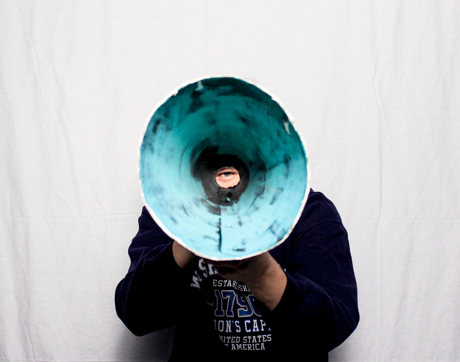 When speaking into the cone the warm tone indicates noise production, whereas the cool tones indicate noise production is low.